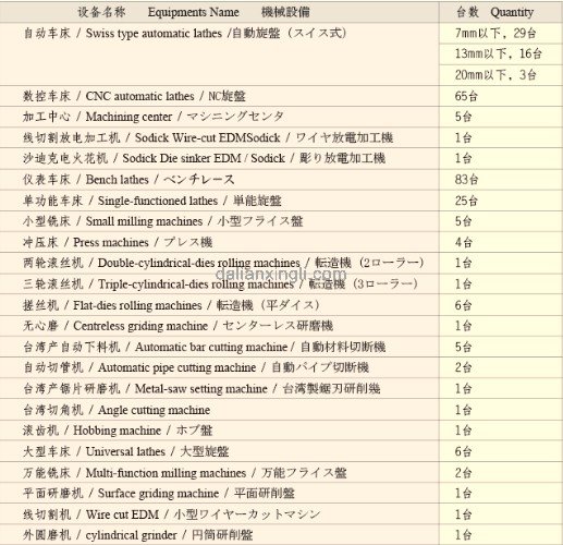 主要加工設(shè)備